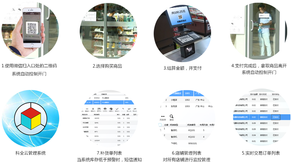 ○ 门禁系统——由客户扫码或结算后系统控制开关门